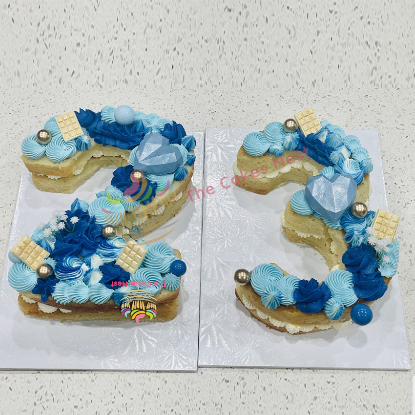 Our standard number and letter cakes are made with two delicious, moist layers of cake and filled with a flavor of your choice. Each cake can be customized to match your theme, colors, or celebration style.