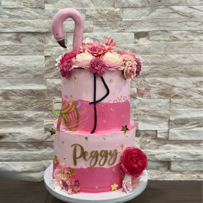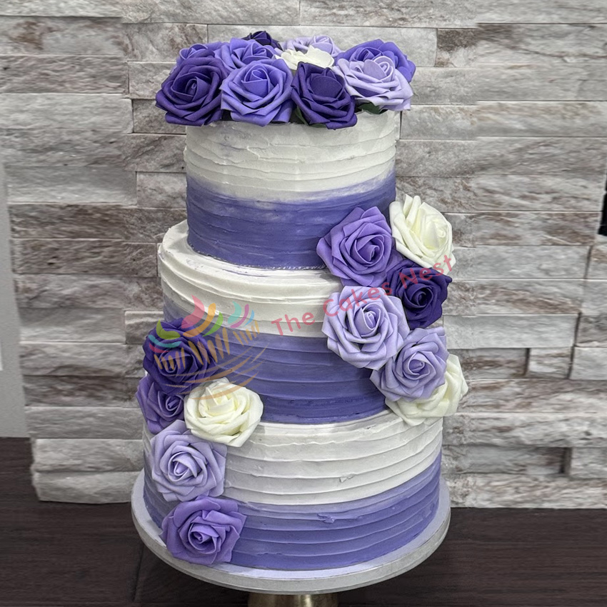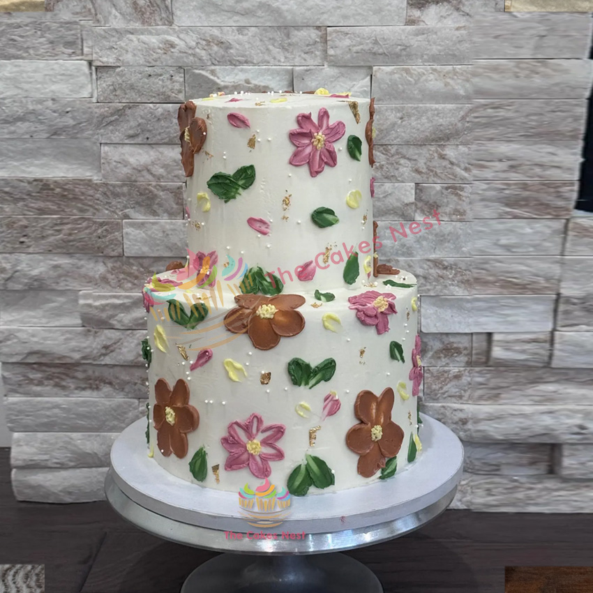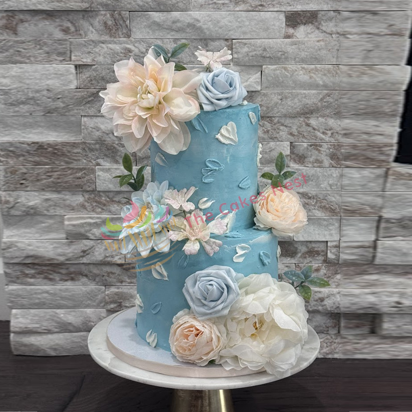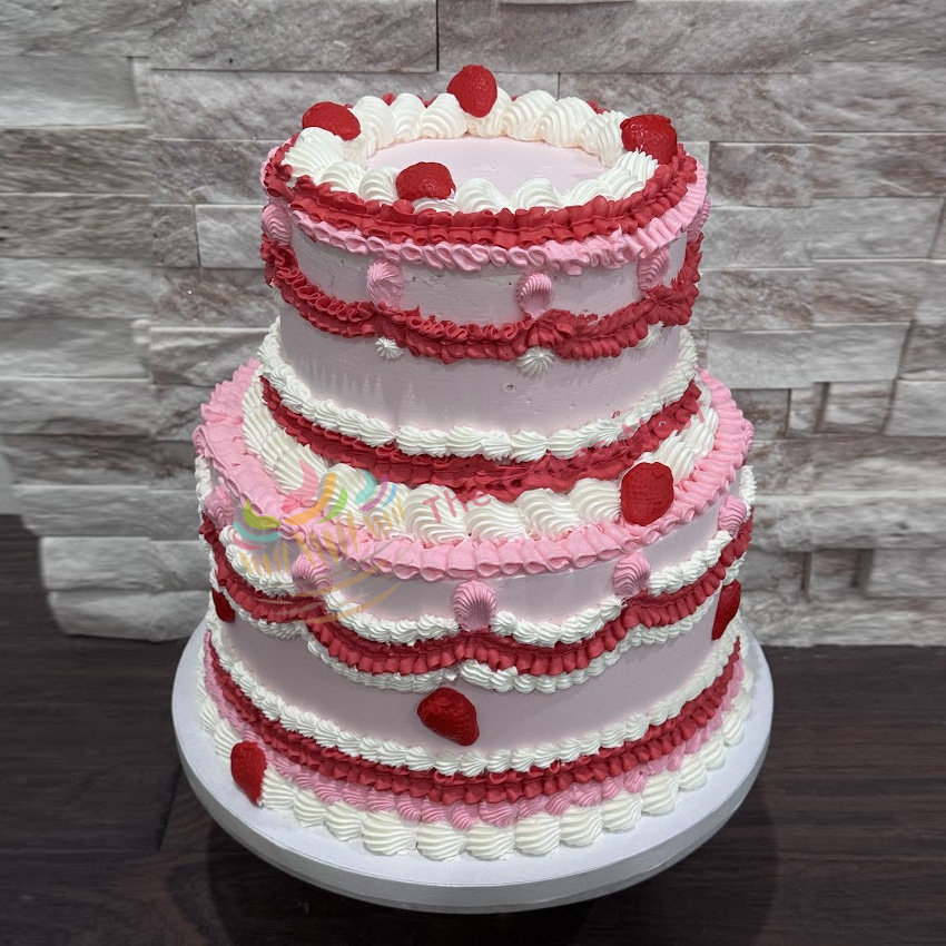 Each tier will have three delicious, moist layers of cake with a filling of your choice. Every cake is covered in smooth buttercream, and designs can be customized to match your theme or event.